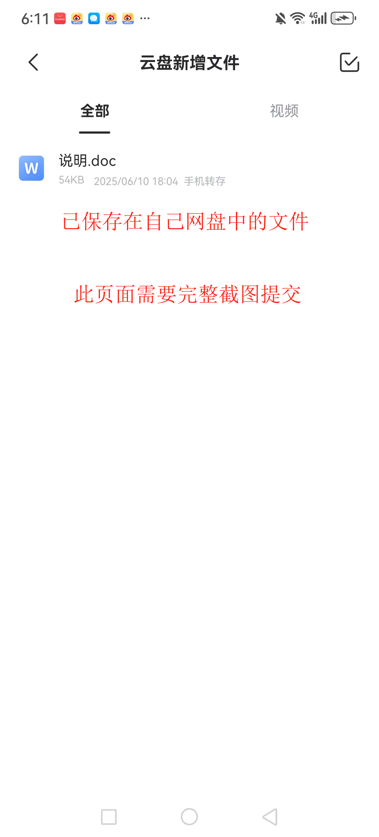 将保存在自己网盘中的文件页面截图和下载到手机中的文件截图提交